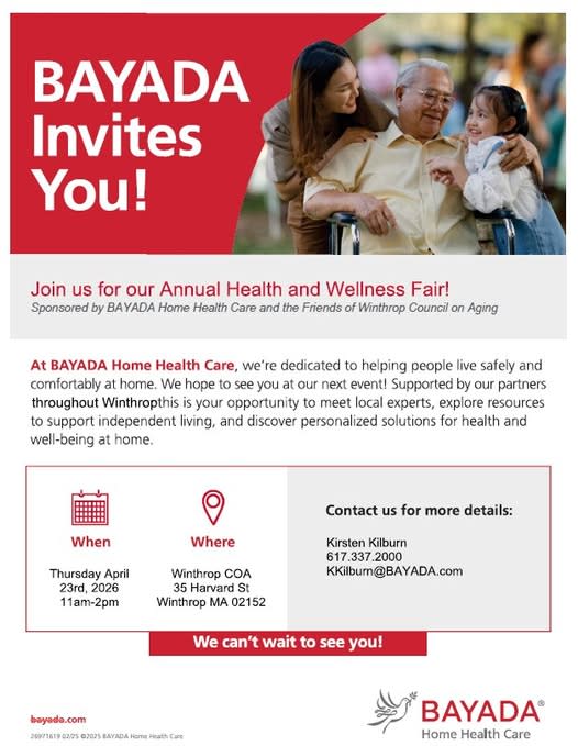 This event is hosted by BAYADA Home Health Care and the Friends of Winthrop Council on Aging with all proceeds from raffle ticket sales and vendor tables supporting the Friends of the Winthrop Council on Aging and their mission to provide free and reduced services to local residents.